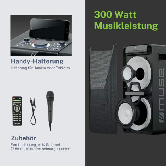 Cajón altavoz bluetooth para fiestas con lector de discos y batería M-1920 DJ de Muse.