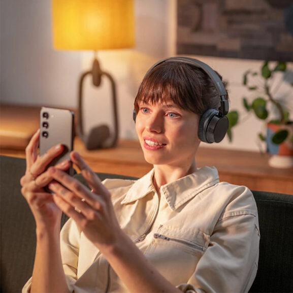 Estos auriculares de diadema inalámbricos son perfectos para tu día a día, tan cómodos como atractivos. Disfruta de un sonido excelente, Dynamic Bass para graves más profundos, incluso a volúmenes bajos, y un ajuste de retardo bajo para contenido de vídeo.
