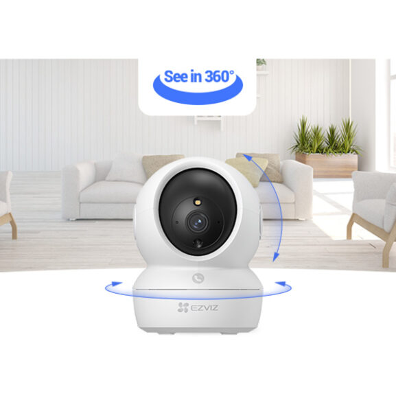 Cámara inteligente para el hogar con movimiento horizontal y vertical H6c 2K Type C de Ezviz.