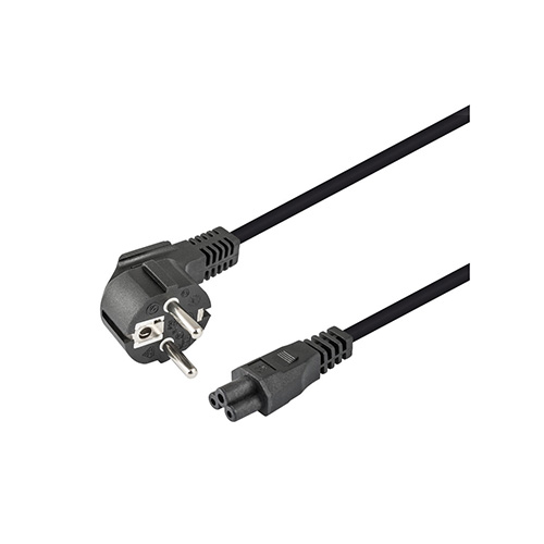 Cable de alimentación de red macho acodado SCHUKO – hembra (trébol) IEC320-C5 1.8 metros. 3 conductores 250V/10A.