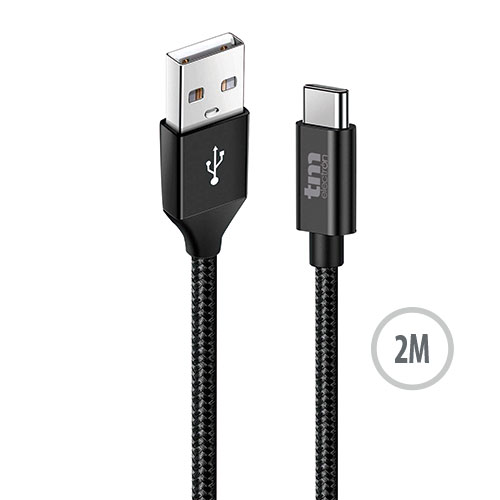 Conexión USB A a USB C para carga y transferencia de datos 2.4A Nylon 2M.
