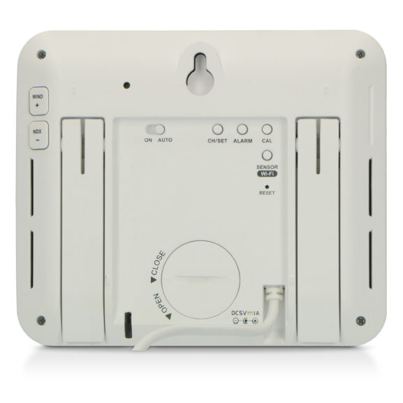 Esta extensa estación meteorológica está equipada con un sensor de radiación UV/potencia solar. La potencia solar mide la cantidad de radiación ultravioleta (UV) presente en la luz solar que llega a la Tierra. La cantidad esperada de UV se refleja en el índice UV. Este número representa el efecto de la intensidad de la radiación solar sobre la piel desprotegida. En los Países Bajos, en días soleados, la intensidad puede alcanzar 8. Esta intensidad es bastante alta y puede causar quemaduras solares en 10 a 15 minutos. En esos días, es recomendable aplicar protector solar o evitar el contacto directo con el sol.