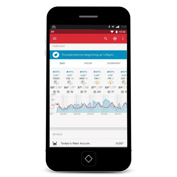 No dependes de la pantalla a color. Accede a tus datos y estadísticas meteorológicas desde cualquier lugar del mundo a través de la app WunderStation y, al igual que con tu estación meteorológica, puedes revisar, compartir y comparar tus datos con los de otras estaciones meteorológicas subterráneas. En la app, diseñas tus propios paneles para que tu pronóstico sea lo más personalizado y relevante posible.