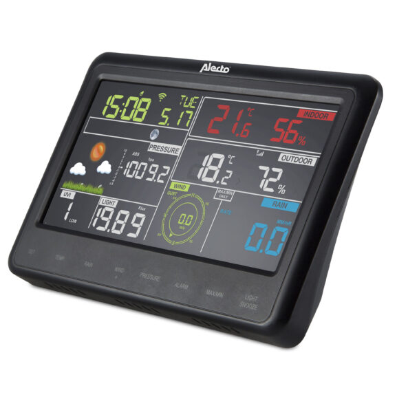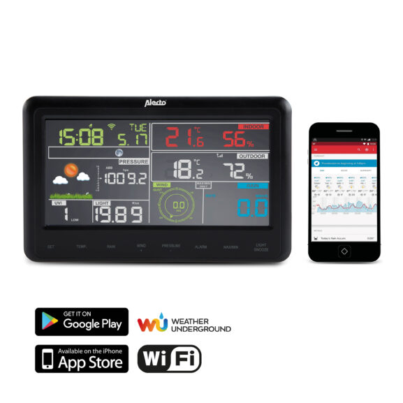 Estación meteorológica profesional 8 en 1 con wifi, app y sensor exterior inalámbrico, color negro Alecto WS-5500.