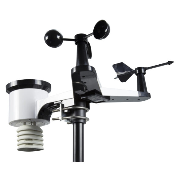 – Sensores para: rayos UV y solares, humedad, velocidad y dirección del viento, presión atmosférica, sensación térmica interior, exterior y del viento, precipitaciones.