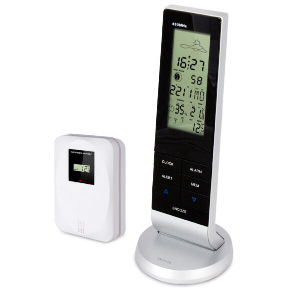 Monitorea el tiempo con una estación meteorológica digital. ¿Necesitas un impermeable o llevarlo contigo? ¿Hace mucho frío y debes estar atento a la formación de hielo? ¿Hace mucho calor y tienes que darles agua extra a los niños? El tiempo puede ser un fenómeno fascinante y tiene un gran impacto en nuestra vida diaria. Esta WS-1150 es una estación meteorológica digital que te proporciona todas las mediciones que necesitas: la temperatura (tanto interior como exterior), la humedad interior, la temperatura y humedad mínima y máxima registradas, la fase lunar y el pronóstico del tiempo. Además, esta estación meteorológica incluye reloj, calendario perpetuo y alarma. ¡Un producto muy completo y con muchas funciones!
