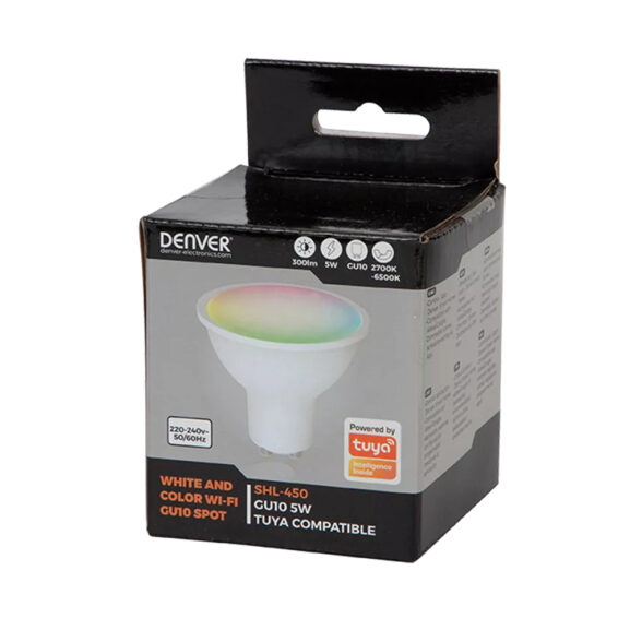 Lámpara LED WI-FI GU10 RGB Denver SHL-450. Compatible con TUYA y asistente de Google/Amazon Alexa.