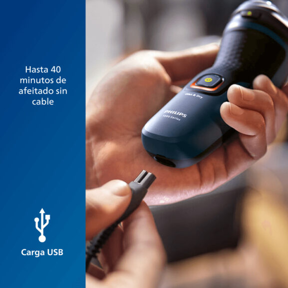 – 40 minutos de afeitado sin cable después de una carga de ocho horas.