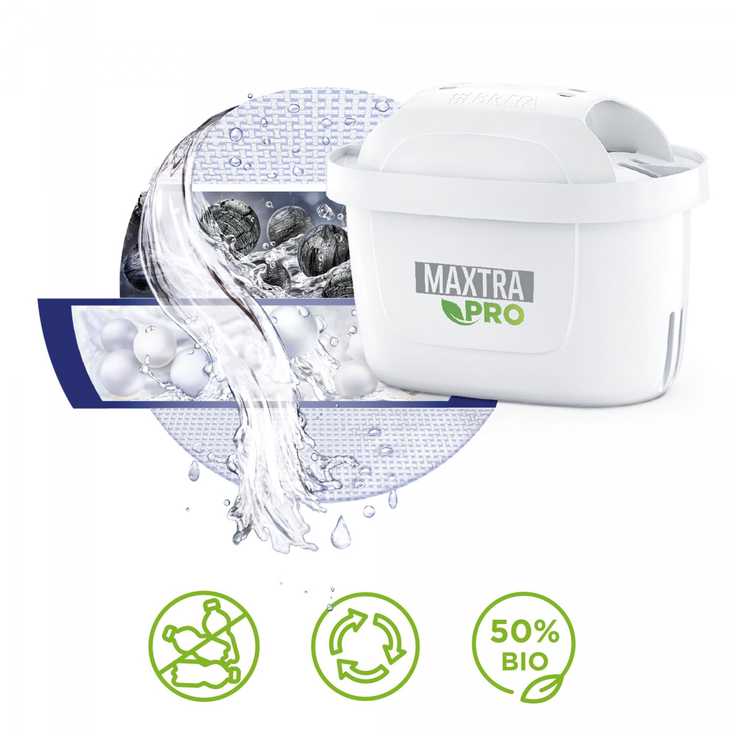 – 1 filtro de agua MAXTRA PRO sustituye hasta a 150 botellas de agua de plástico (1 litro)