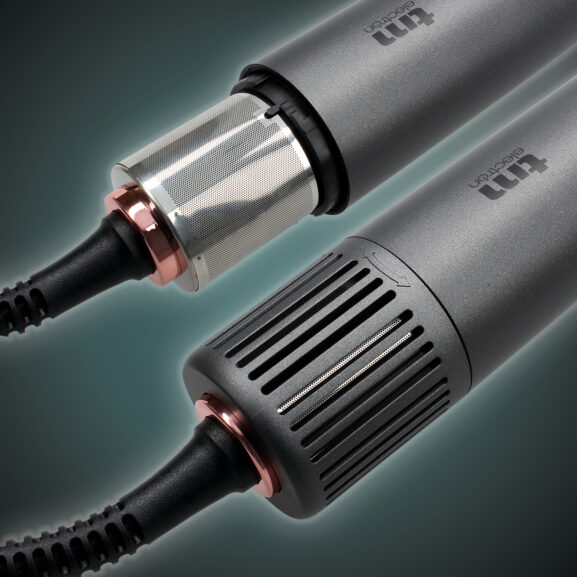 – Cilindros rizadores con efecto Coanda enrollan el cabello alrededor del moldeador y crean rizos perfectos sin esfuerzo.