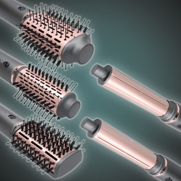 – Conseguirás una mayor variedad de peinados con sus 6 cabezales diferentes: secador, un cepillo de 40mm, 1 cepillo ovalado, 1 peine, 1 boquilla redonda y 2 rizadores (derecho e izquierdo).