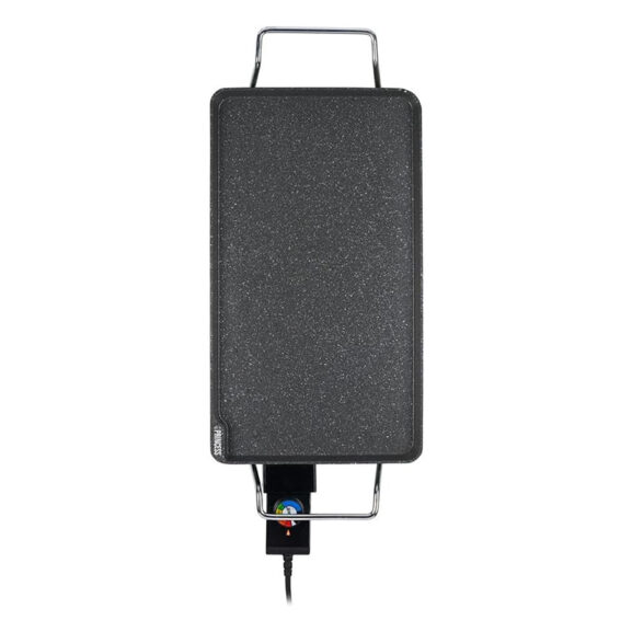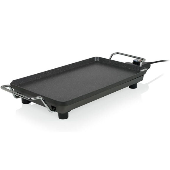 – Los 2000W de potencia podrás controlarlos gracias a su termostato, que te permitirá elegir la temperatura, en función del alimento que quieras cocinar, y que además es desmontable, con lo que incluso podrás llevar la plancha a la mesa para servir.