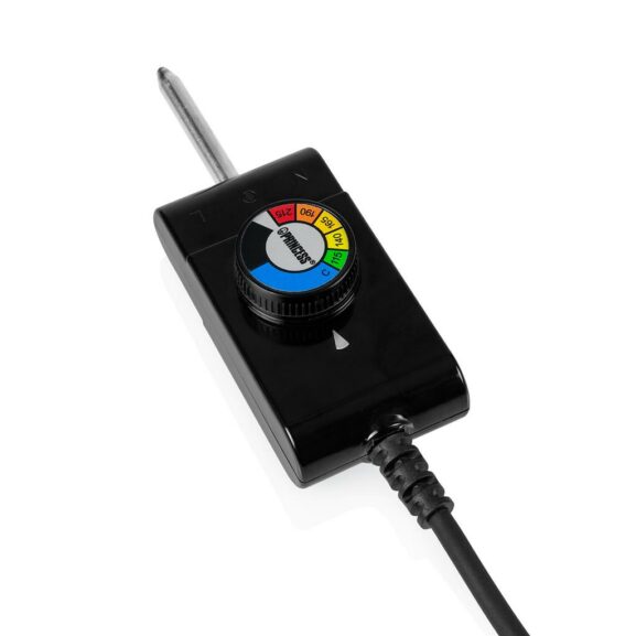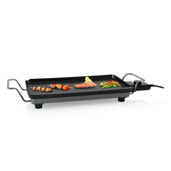 – Los 2500W de potencia podrás controlarlos gracias a su termostato, que te permitirá elegir la temperatura, en función del alimento que quieras cocinar, y que además es desmontable, con lo que incluso podrás llevar la plancha a la mesa para servir.