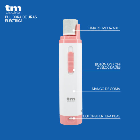 Pulidora eléctrica de uñas TM Electrón. Color rosa.