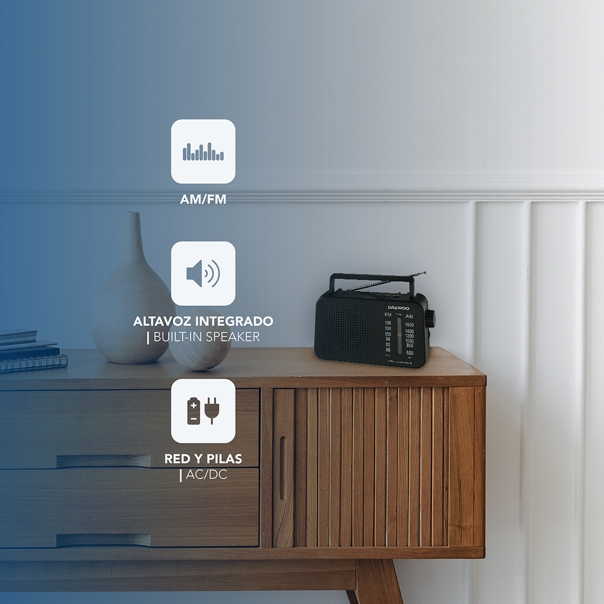 Radio Portátil AC/DC Daewoo con AM/FM,
