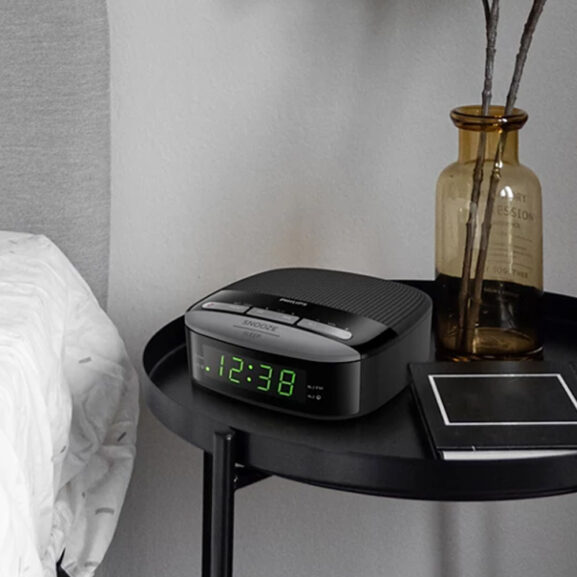 Disfruta de la sencillez con esta radio reloj digital FM. La gran cantidad de presintonías hacen que la navegación por las emisoras sea muy sencilla y puedes ajustar la alarma para que te despierte con un volumen de radio que sube suavemente. ¿Quieres dormir? Solo tienes pulsar el botón de repetición.