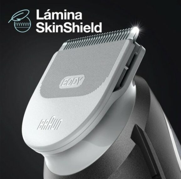 Minimiza arañazos y cortes para una comodidad total de la piel: la tecnología integrada SkinShield y el peine para áreas sensibles protegen tu piel mientras recortas el vello corporal, incluso en áreas sensibles.