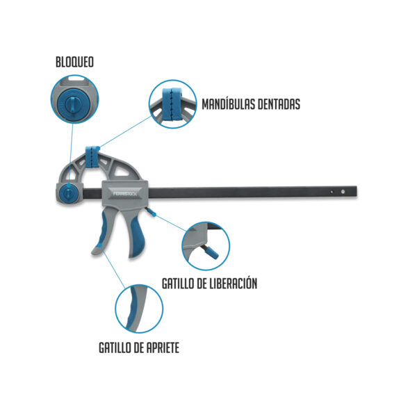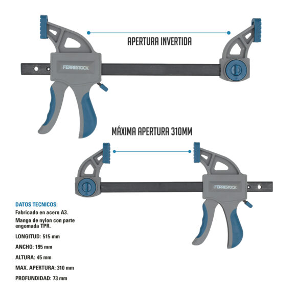 Sargento de apriete monomanual 12″/300 mm 2 piezas Ferrestock.