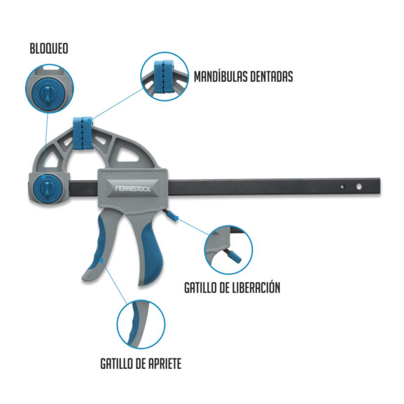 Sargento de apriete monomanual 8″/200 mm 2 piezas Ferrestock.