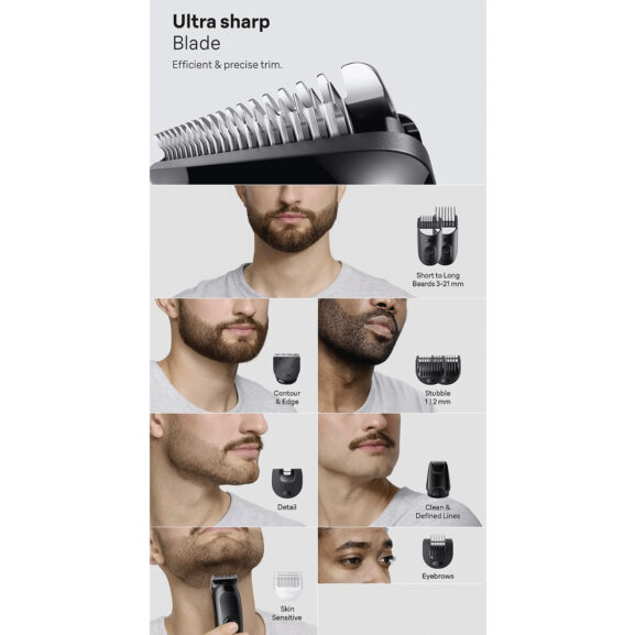 Su lámina ultra afilada es eficiente en cada pasada, incluso en las zonas de difícil acceso, para un acabado increíble y un afeitado cómodo.