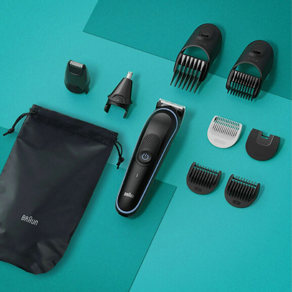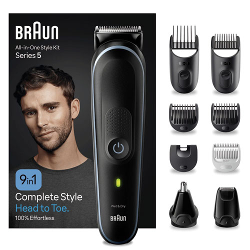 – Recortadora 9 en 1 Series 5 de Braun para afeitado de pies a cabeza: accesorios especializados para barba, nariz y orejas, recorte de pelo y rasurado masculino para todo el cuerpo.