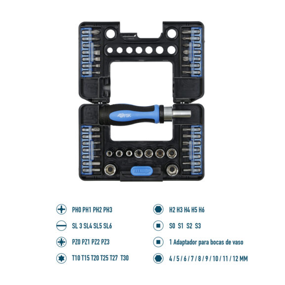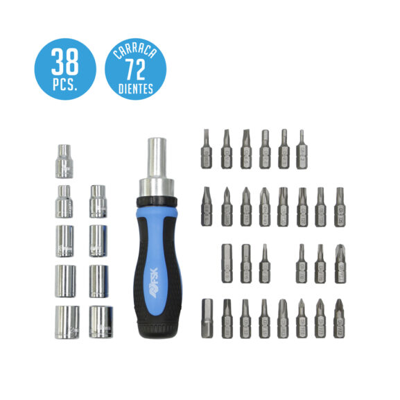 SET PUNTAS CON MANGO CON CARRACA 38 PCS.