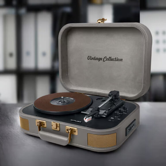 El tocadiscos MUSE MT-201 BTG destaca por su diseño moderno y compacto. Es ideal para quienes buscan un dispositivo versátil con funciones avanzadas de conectividad, todo en un formato pequeño y atractivo.