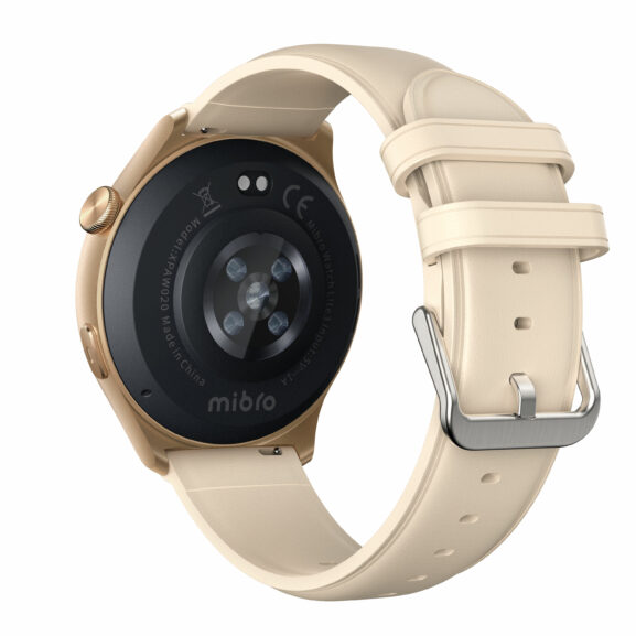 Mibro Watch Lite 3 dorado con correa de cuero sintético + correa extra de silicona, pantalla AMOLED de 1.3″ AOD y llamadas Bluetooth