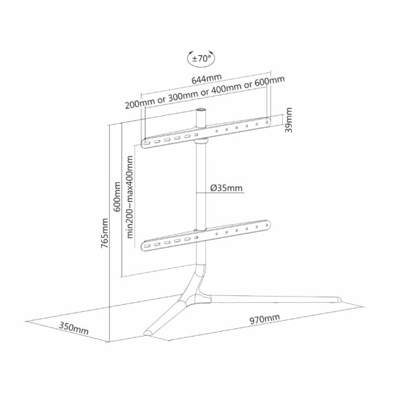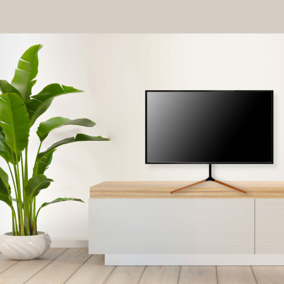 Soporte de mesa para TV de 49″ a 70″ con acabados en madera TM Electron.