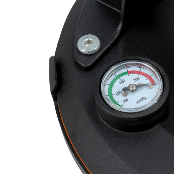 – Doble control de presión: Gracias al manómetro y a la señalización en el pistón, podrás tener un control absoluto sobre la presión de la ventosa en todo momento. Muy recomendable para los trabajos más delicados.