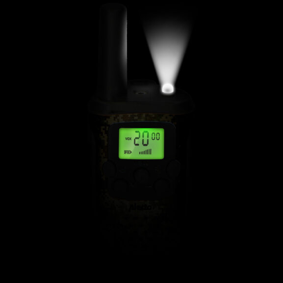 Disfruta y diviértete con el Alecto FR-115CAMO. En el camping, los fines de semana, durante las vacaciones o practicando deportes al aire libre como snowboard, pesca, ciclismo de montaña o carreras a campo traviesa. Este walkie-talkie es muy útil en cualquier situación. Gracias a su amplio alcance de hasta 7 kilómetros, la linterna integrada y su sistema operativo fácil de usar, este walkie-talkie es la opción ideal para cualquier ocasión.